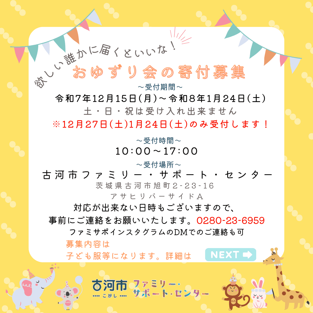 令和8年2月7日(土)のイベント内で開催されるおゆずり会の寄付を募集いたします。